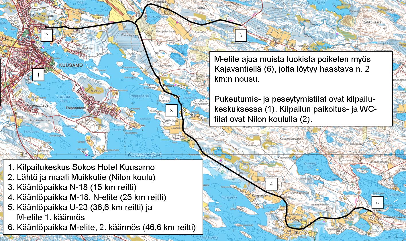 (kääntöpaikat 1=15km, 2=25km, 3=37km) |